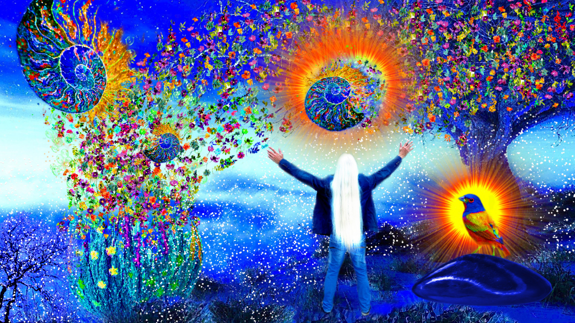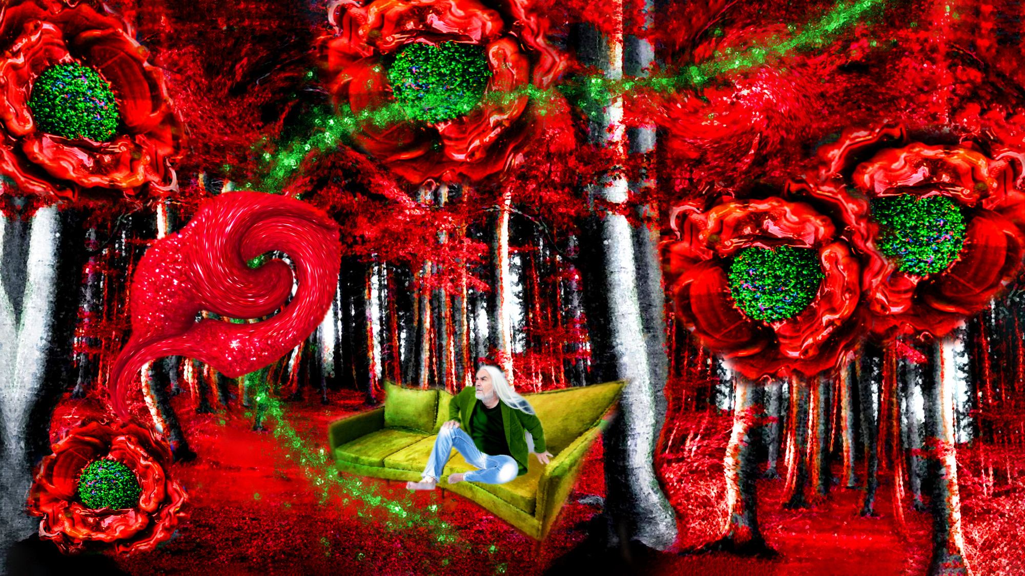 Die Bilder von der Tanja, an denen sie seit fast zehn Jahren täglich arbeitet, sind gross - und bunt, sehr bunt. Ein Farbenrausch einssechzig mal neunzig. FARBFLUCHT nennt Tanja ihre, in einer speziell entwickelten Collagentechnik hergestellten Bilder, in die man, wegen ihrer plastischen Wirkung, glaubt hineinspazieren zu können - Licht und Farbe sind die konstitutive Grundlage ihrer Arbeiten, die durch das Material, den Bildträger gleichsam räumlich entwickelt werden. Steht man vor ihren auf Acrylglas gedruckten, farbenfrohen Werken, wird man eingesaugt in die Traumwelt von Tanja Raith, von der man wie selbstverständlich im Bild persönlich begrüsst wird, wohnen doch sie und ihr Mann in den Bildern. Da tanzen, sitzen, stehen, staunen und agieren sie in den intensiv leuchtenden Landschaften, nehmen den Betrachter an der Hand und führen ihn in ihre Welt, einer faszinierenden Symbiose aus Konkretem, Abstraktem voller Symbolik, Anspielungen und Assoziationen. Und so beginnen die Bilder, die Tanja um Momentaufnahmen aufbaut, ihre Geschichte zu erzählen. „Musik und Kunst müssen die Seele zum Schwingen bringen“, sagt Tanja, und so hatte sie die Idee ihre Bilder in einem Film mit ihrer Musik zu verbinden, welches auch in der Ausstellung zu sehen sein wird. "Dieses Musikvideo", sagt sie, "ist das bislang aufwändigste Projekt von mir.“ In dem Video sind sie und ihr Mann als Protagonisten in den bewegten, animierten FARBFLUCHT- Bildern zu dem Lied „Frei“ zu sehen. „Frei“, sagt Tanja, „ist ein lebensbejahender Song von mir, eine Ode an das Leben. Mit diesem Musikvideo schliesst sich der Kreis aus meiner Malerei und meiner Musik.“